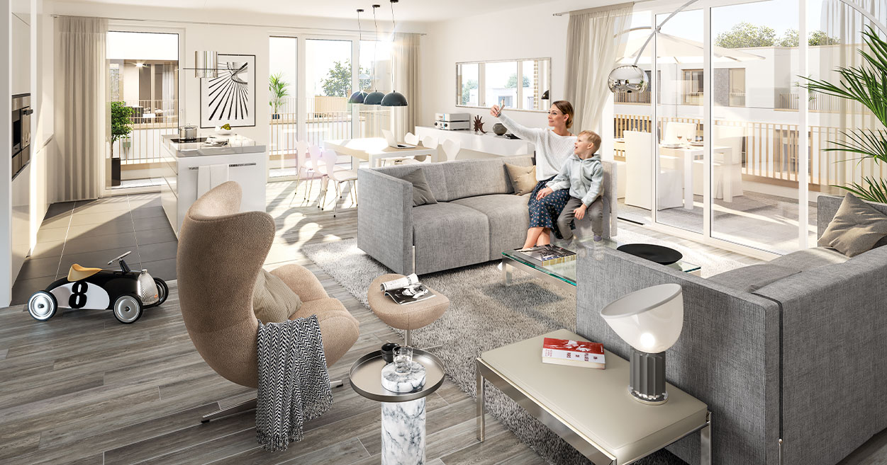 Es entstanden 66 attraktive, hochwertige Wohnungen und eine Tiefgarage. Das Quartier „Wohnen am Obstmarkt“ liegt zentral und doch im Grünen.